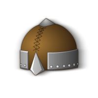 This helmet is made of metal basis wrapped with leather. An decent protection but enough for a hunt.