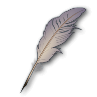 Description:This large fowl feather has been properly purified in scorching sand and sharpened for writing. Only a warrior befallen by the gift of a writer may assume possession of it and compose a bright chronology of his or her military prowess.