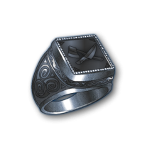 Modifiers:Description:The standard signet ring of coarse forging made of "dirty" iron and decorated with a robber brotherhood symbol. This little thing is perhaps the extrinsic value just for the "fool's coat", as they call recruits in the bandits ranks. Just a recognize a black ring on a finger, common people shy away in fear, giving its wearer a false sense of status and power. At the same time, it "magic" has a slightly different effect on the advocates of law and order.
