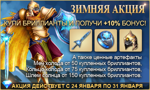 What’s more, for a total purchase of 50 diamonds or more during the offer period you’ll one-time get a unique gift artefact - Sword of cold for FREE!