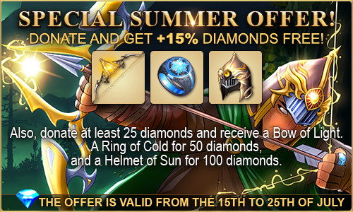 Donations for the duration of the sale will give a bonus +15% more diamonds!