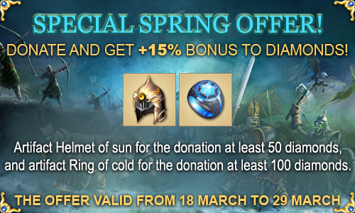 You will receive a uniq memorial gift artifact as a bonus if summary donation during the offer is more than 50 diamonds!